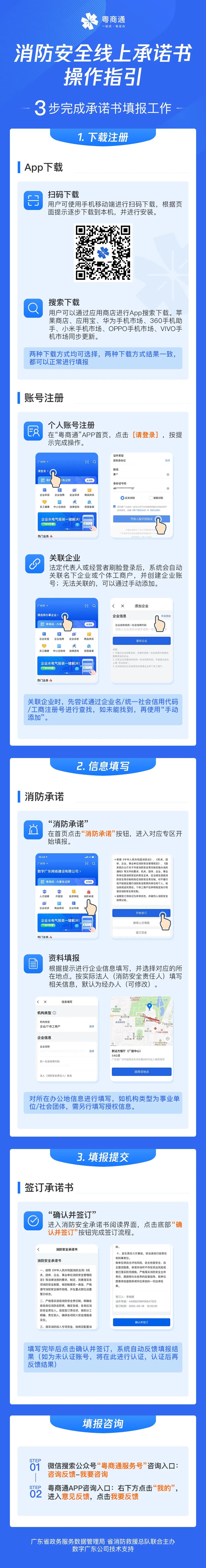 为进一步深化消防安全专项整治三年行动,贯彻落实《广东省人民政府办公厅关于转发省政务服务数据管理局 省市场监管局加快推进粤商通平台建设推广工作方案的通知》,运用线上手段广泛告知消防安全管理职责任务,有效提升社会监督效能,督促指导企事业单位落实消防安全主体责任和“三自主两公开一承诺”制度,省消安委决定即日起至11月30日,利用粤商通平台,在全省范围内开展企事业单位消防安全线上大承诺活动。